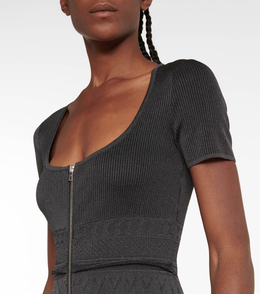 Трикотажное платье миди с оборками ALAÏA, черный