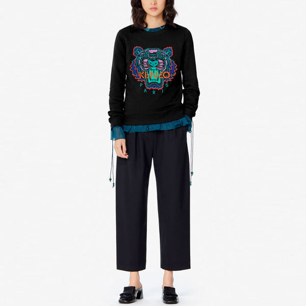 Свитер embroidered tiger head round neck black hoodie Kenzo, черный 35 864₽