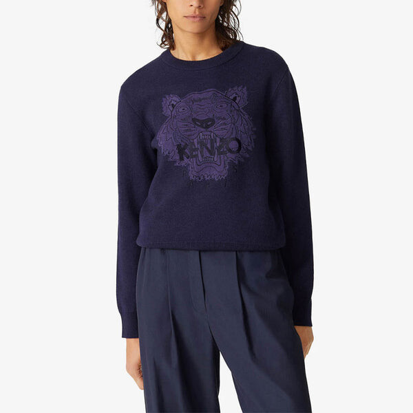 Свитер ss21 tiger embroidered long sleeves pullover hoodie navy blue Kenzo, синий 39 010₽