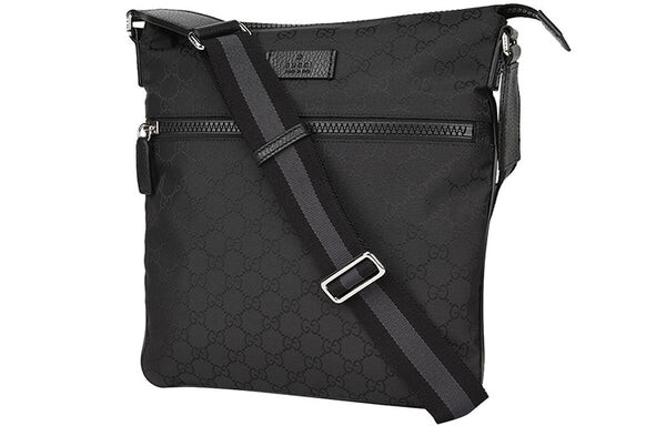 Сумка men's logo leather logo stripe webbing shoulder strap nylon shoulder messenger bag black Gucci, черный 170 754₽