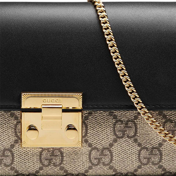 Сумка padlock metallic logo canvas chain handbag / black Gucci, коричневый 118 408₽
