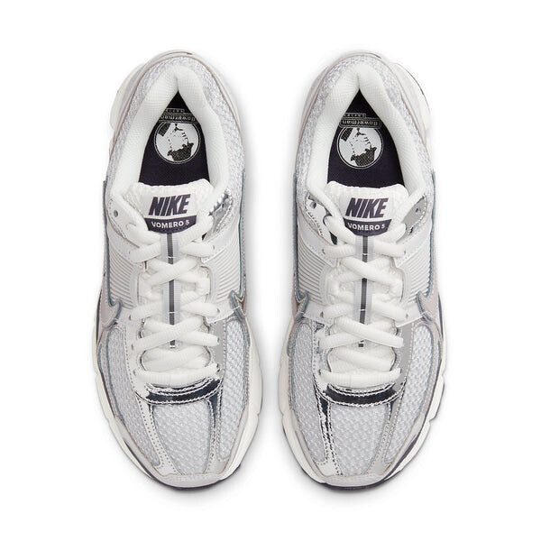 Бренд: Nike Цвет: мультиколор Кроссовки Nike Zoom Vomero 5 в цвете Photon Dust и Metallic Silver обеспечивают воздухопроницаемый комфорт благодаря амортизации Zoom Air для отзывчивого возврата энергии. Мягкая пенная промежуточная подошва обеспечивает поддержку, а фиксатор пятки из термополиуретана повышает устойчивость. Прочная резиновая подошва с вафельным рисунком обеспечивает сцепление. Эти стильные кроссовки украшены культовым логотипом Nike Swoosh и надписью «NIKE VOMERO 5».