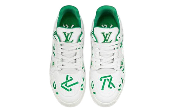 Бренд: Louis Vuitton Цвет: белый Эта первая эко-версия кроссовок LV Trainer изготовлена из 90% экологически чистых материалов, включая переработанный полиэстер и биоматериалы для верха, а также переработанный полиуретан для подошвы. Логотип LV upcycling используется в качестве принта на верхе, который также подписан инициалами LV из переработанного полиуретана. Эта культовая модель была разработана Вирджилом Абло, который черпал вдохновение в винтажных баскетбольных кроссовках.