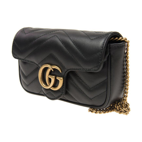 Сумка gg marmont matelasse leather super mini bag 'black' Gucci, черный