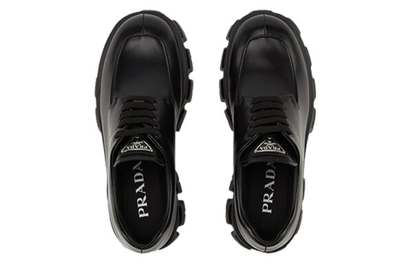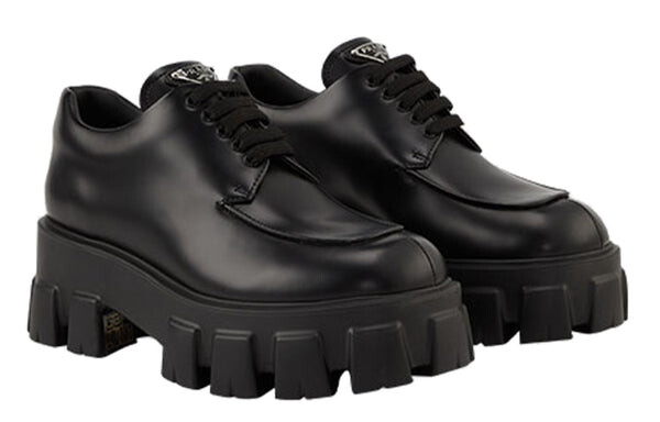 Кроссовки monolith brushed leather lace-up shoes 'black' Prada, черный 187 092₽