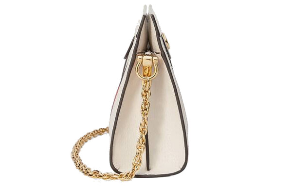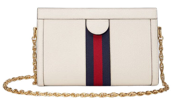 Сумка ophidia gold logo stripe webbing leather chain shoulder messenger bag small white classic Gucci, белый 197 844₽