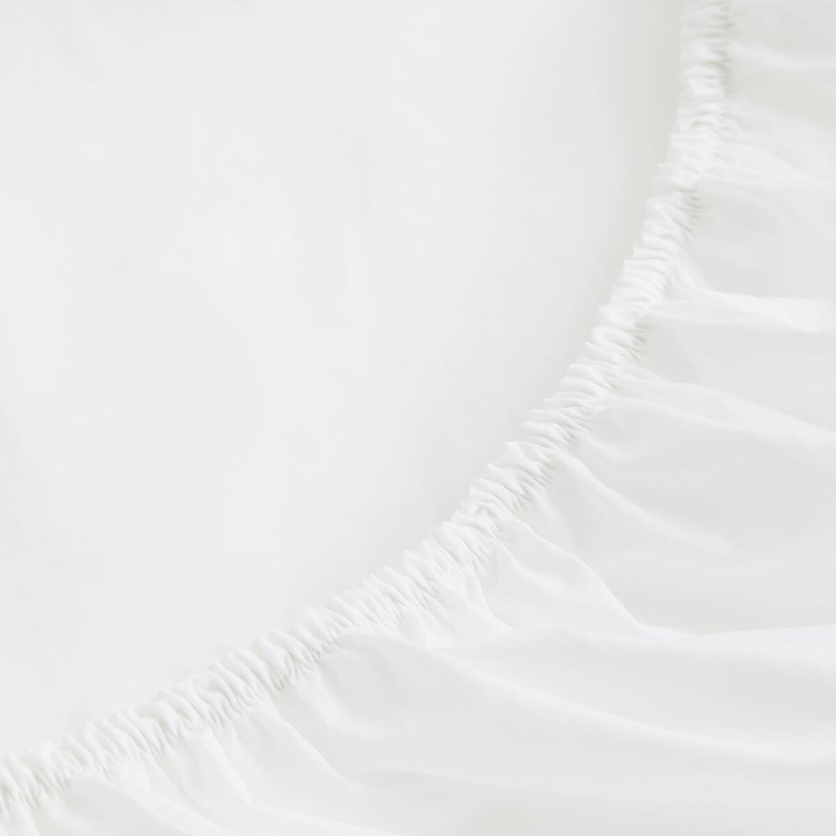 Простыня на резинке из плотного хлопкового перкаля. Подходит для матрасов высотой до 23 см. Плотность 300.