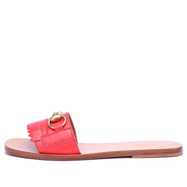 Тапочки horsebit accent leather slides 'orange' Gucci, оранжевый
