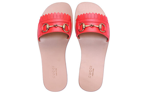 Тапочки horsebit accent leather slides 'orange' Gucci, оранжевый 60 060₽