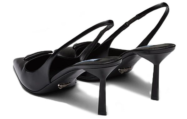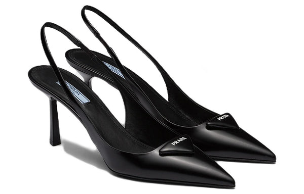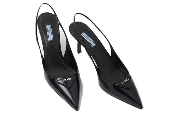 Кроссовки patched logo brushed leather slingback heels 'black' Prada, черный 184 758₽