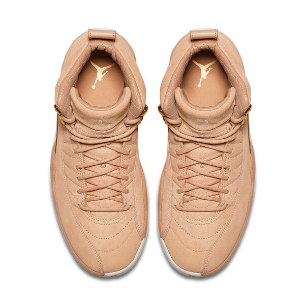 Бренд: Air Jordan Цвет: бежевый Женские кроссовки Air Jordan 12 Retro 'Vachetta Tan' — это прекрасное обновление классических Air Jordan 12. Роскошный замшевый верх и стеганая внутренняя часть придают кроссовкам изысканный вид, сохраняя при этом ту же отличную посадку и ощущение оригинала. Тисненая кожаная вставка на пятке и матовая золотая фурнитура добавляют нотку изысканности, делая эти кроссовки идеальными для любого случая.