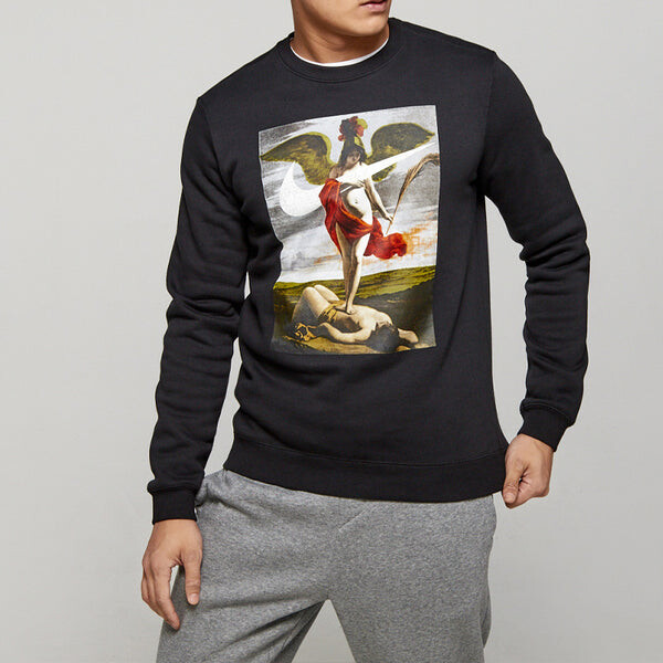 Толстовка men's retro pattern round neck black Nike, черный