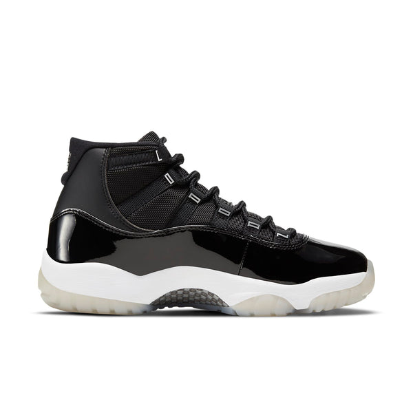Бренд: Air Jordan Цвет: черный Женские Air Jordan 11 «Jubilee» празднуют 25-летие классического силуэта с монохромной черной отделкой. Верх изготовлен из баллистической сетки и лакированной кожи, а также имеет 3D металлический Jumpman и брендинг «23» на пятке. Средний верх опирается на классическую белую пенную промежуточную подошву, поддерживаемую полупрозрачной резиновой подошвой.