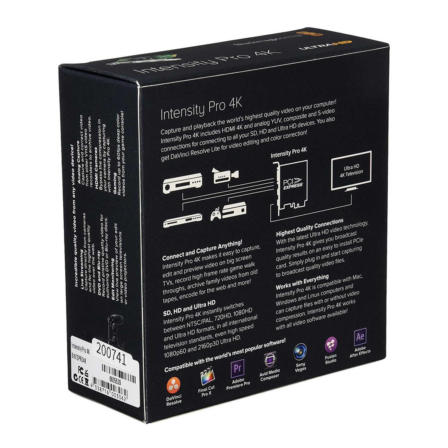 Intensity Pro 4K имеет все необходимые разъемы для самого большого спектра задач, от монтажа и просмотра материала на широком экране до захвата изображения видеоигр с высокой частотой кадров и оцифровки семейных архивов, которые хранятся на пленках в формате VHS. Плата оснащена аналоговыми и цифровыми интерфейсами, которые позволяют работать как с VHS-видеомагнитофонами, так и 4K-телевизорами последнего поколения. Intensity Pro 4K можно даже подключить к камере и использовать ее для проведения онлайн-трансляций, видеоконференций и презентаций!