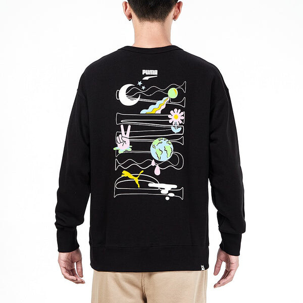 Толстовка back large printing sports training knit pullover black Puma, черный
