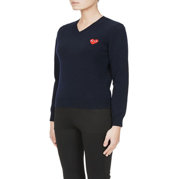 Свитер v-neck l/s t-shirt red emblem 'navy' Comme Des Garcons Play, синий