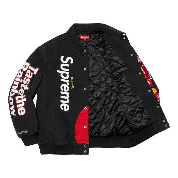 Куртка x skittles x mitchell & ness varsity jacket 'black multi-color' Supreme, черный 106 746₽