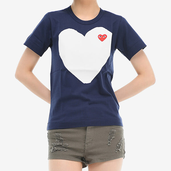 Футболка large heart logo tee 'navy white' Comme Des Garcons Play, синий 21 952₽