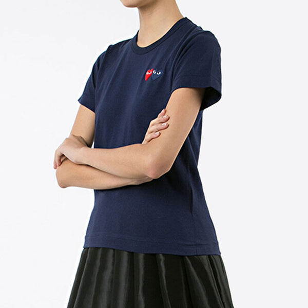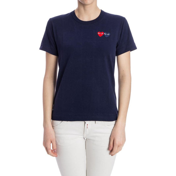 Футболка double hearts logo tee 'navy' Comme Des Garcons Play, синий 21 623₽