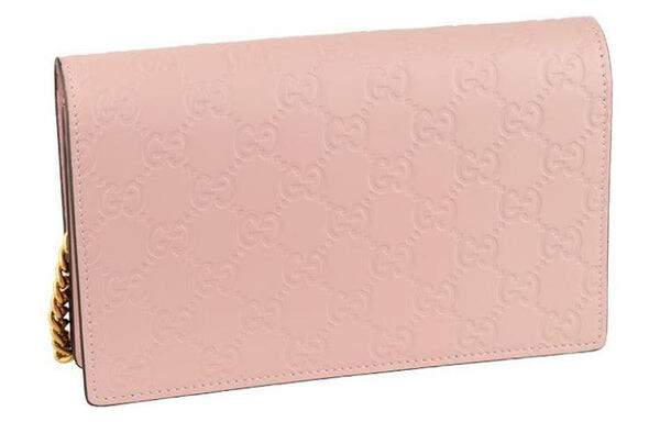 Сумка metallic logo embossing leather chain shoulder messenger bag pink Gucci, розовый 117 557₽