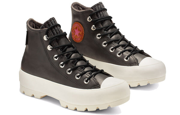Кроссовки chuck taylor all star lugged waterproof leather high top thick sole black white Converse, черный 19 959₽