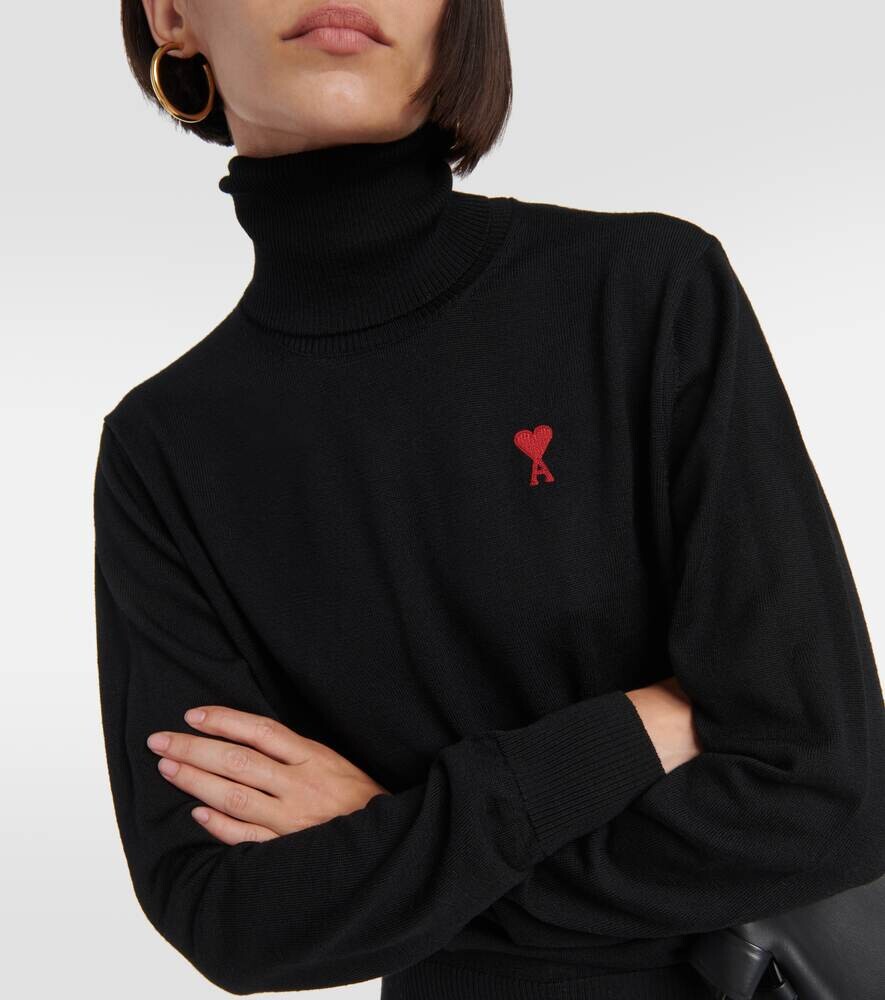Шерстяной свитер с высоким воротником Ami De Cœur AMI PARIS, черный