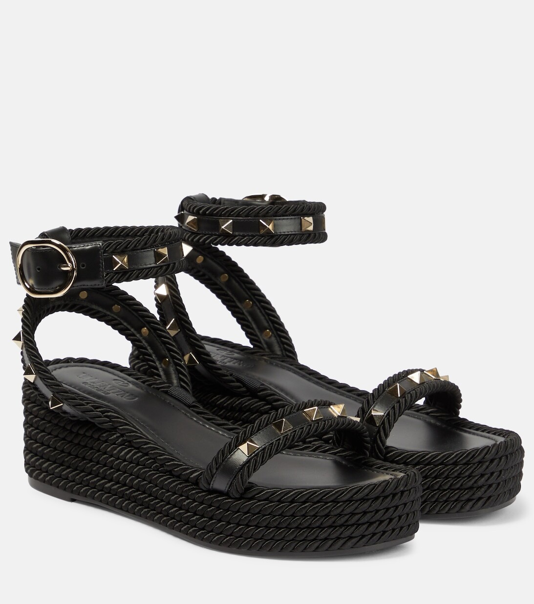 Кожаные эспадрильи на танкетке Rockstud Valentino Garavani, черный