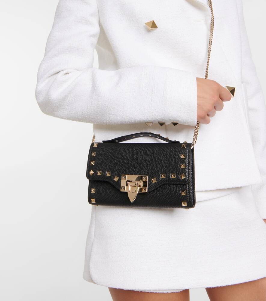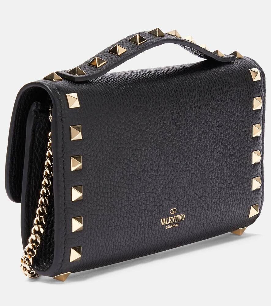 Мини-кошелек Rockstud из кожи на цепочке Valentino Garavani, черный