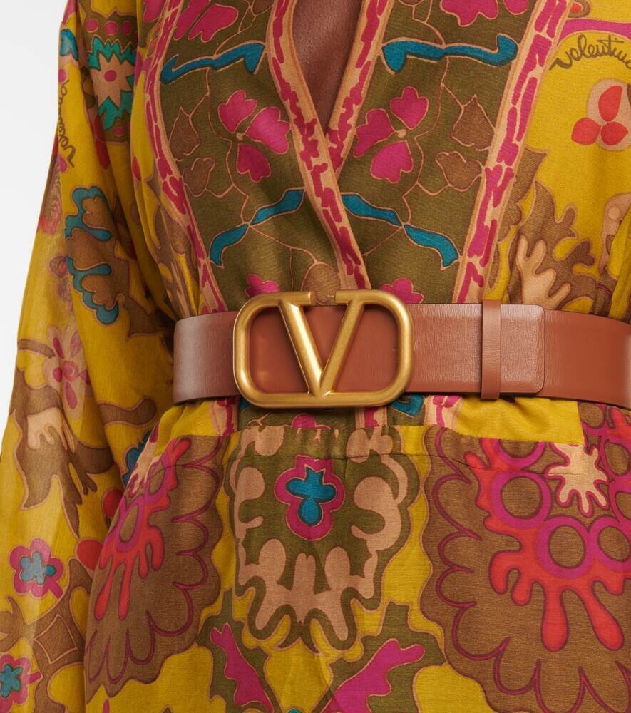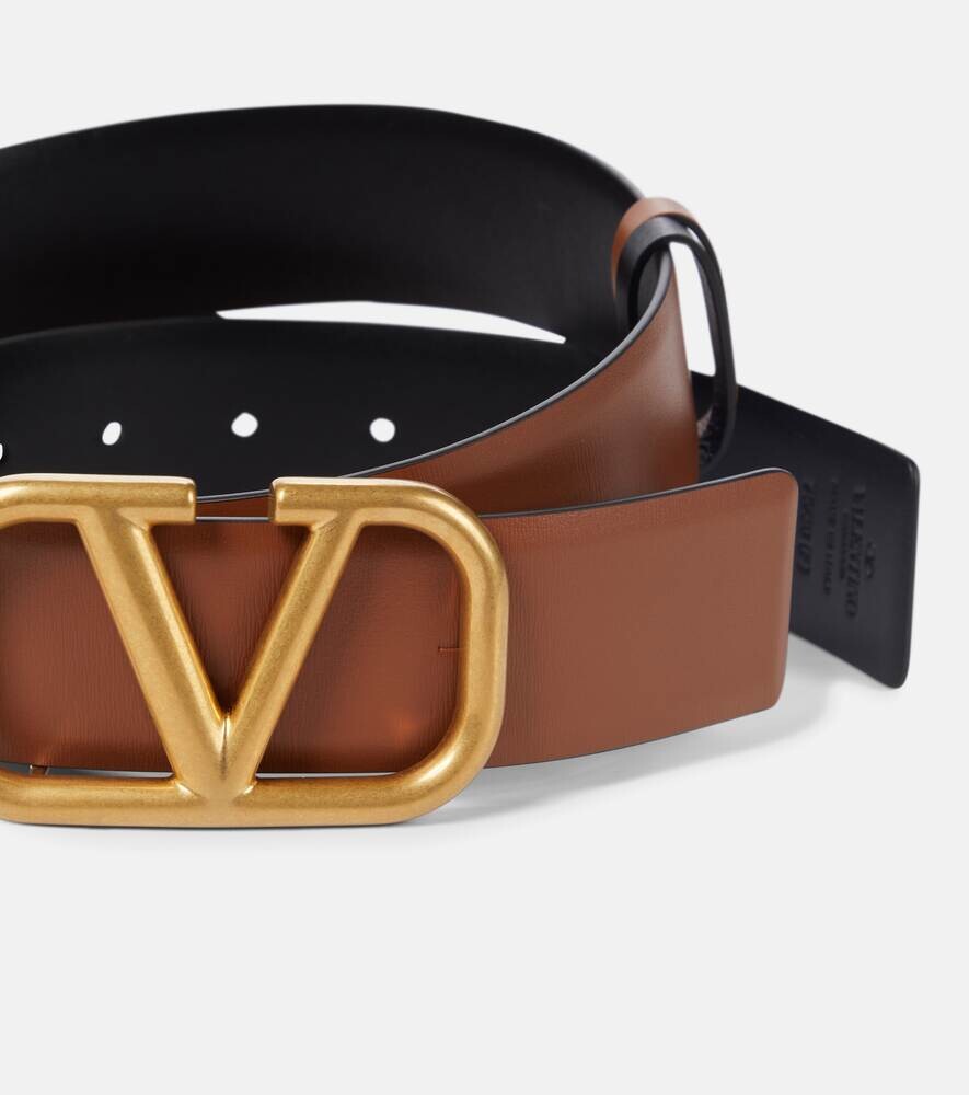 Кожаный ремень с логотипом V Valentino Garavani, коричневый