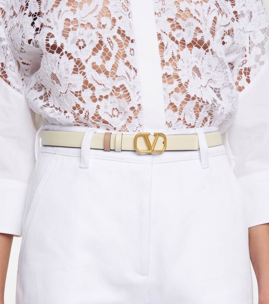 Кожаный ремень с логотипом V Valentino Garavani, белый