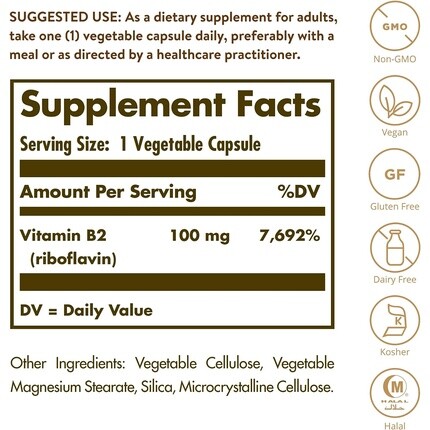 Витамин B2 Рибофлавин 100 мг Растительные капсулы Solgar