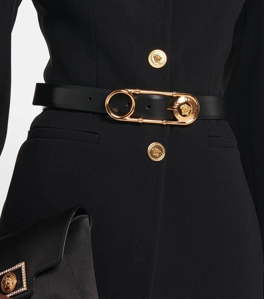 Кожаный ремень с английской булавкой Versace, черный