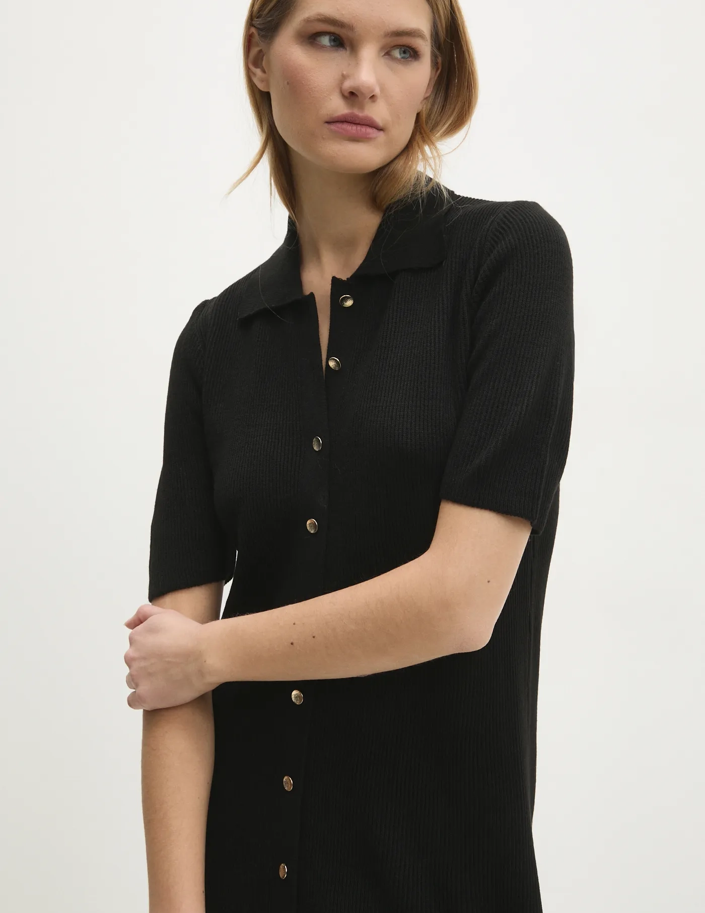 - Модель из трикотажа в рубчик.