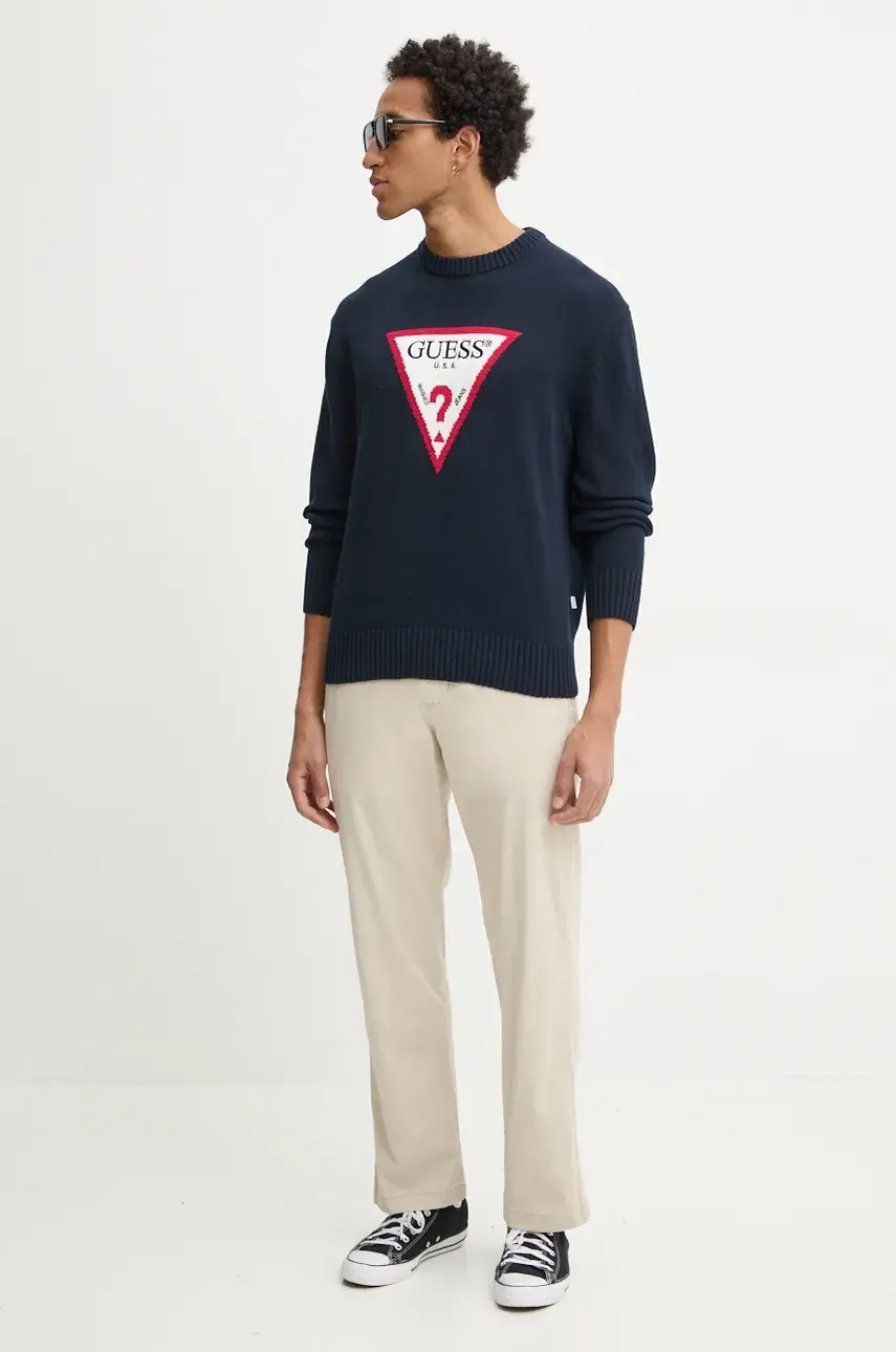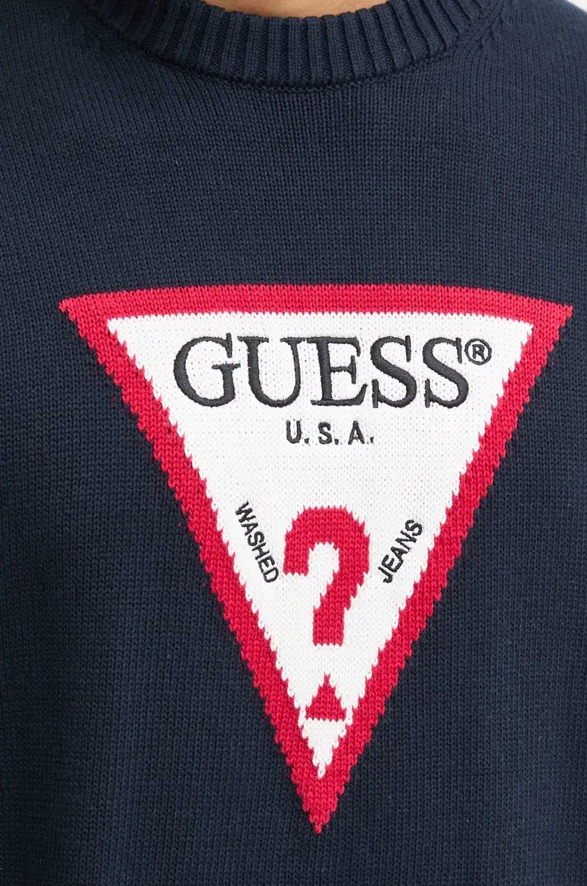 Хлопковый свитер Guess Jeans, темно-синий