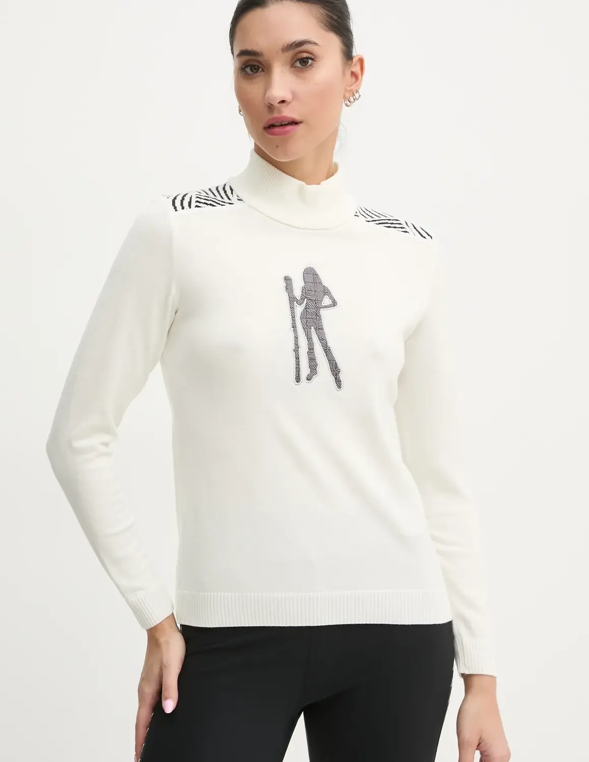 - Водолазка, плотно прилегающая к шее, гарантирует дополнительную защиту от холод.