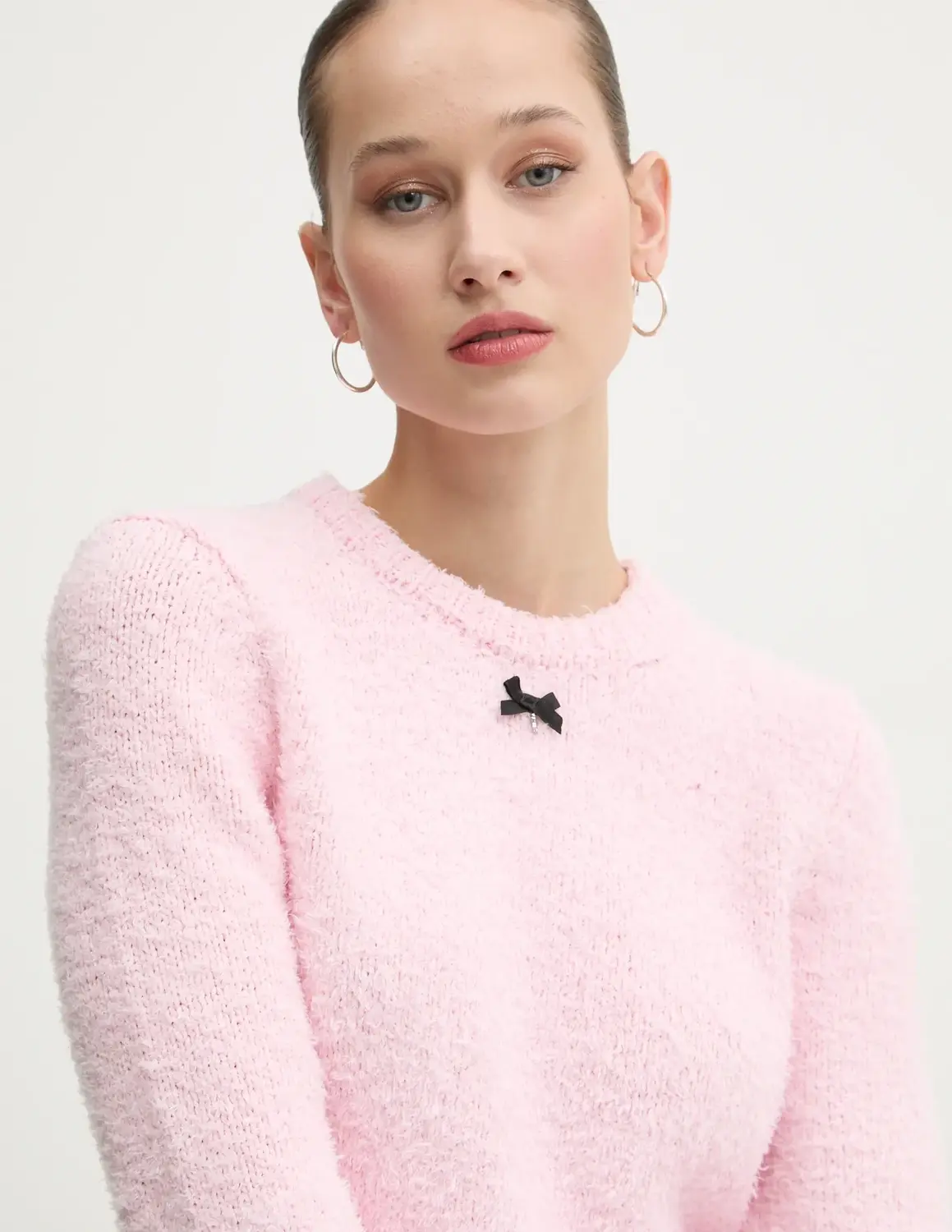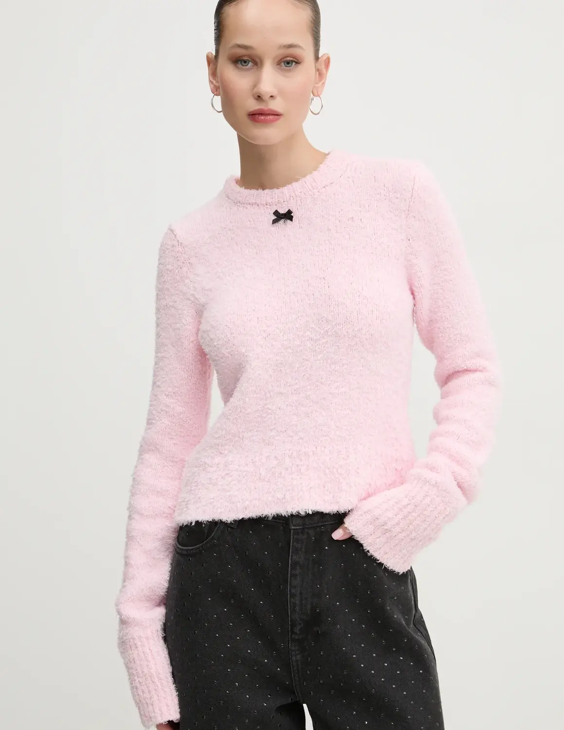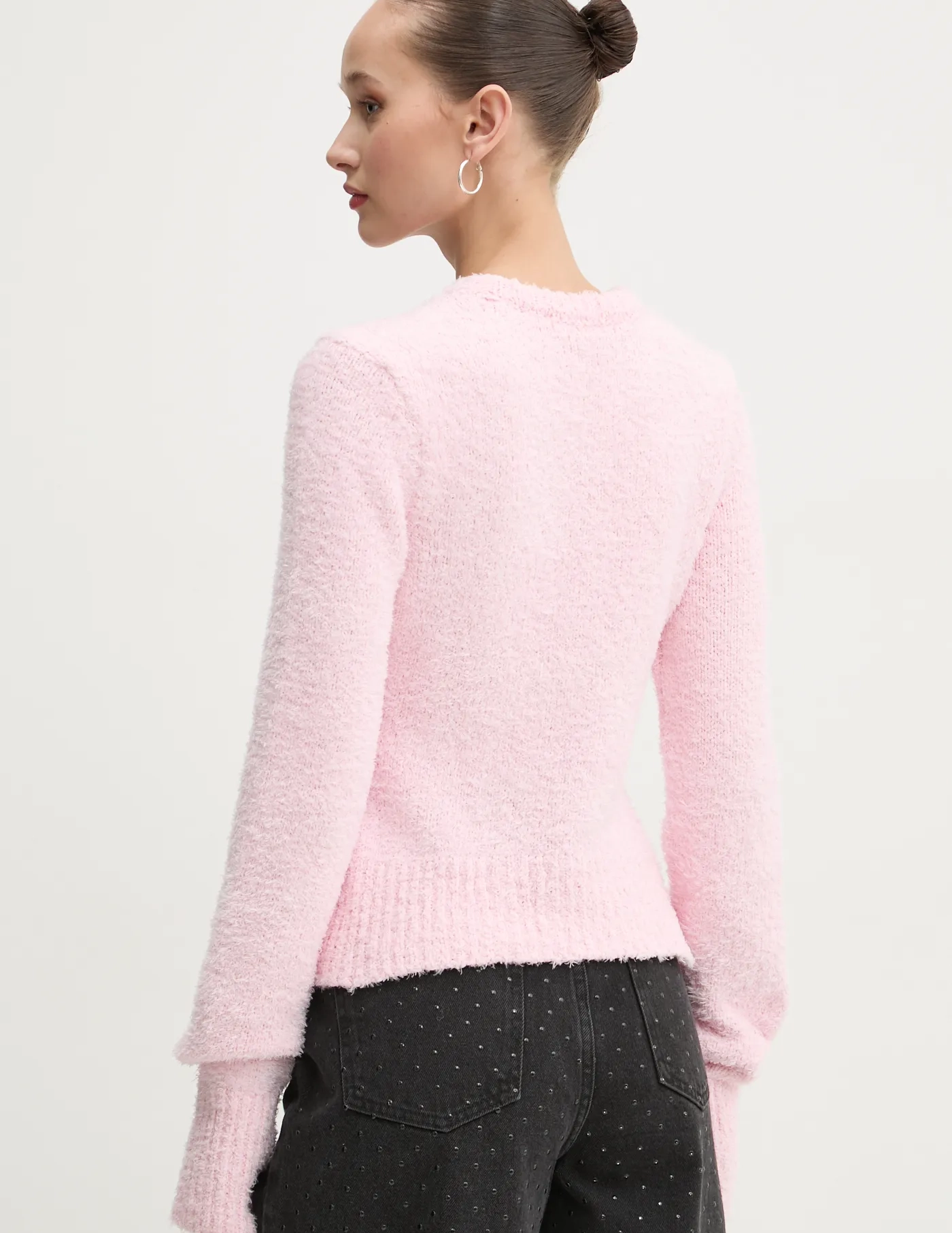 Ротационный свитер из однотонного трикотажа. Модель выполнена из приятной на ощупь ткани.