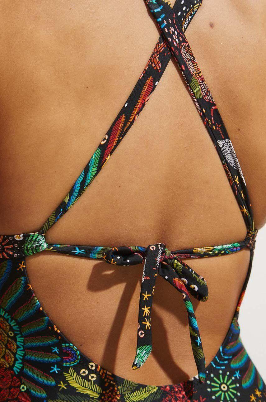 Медицинский цельный купальник. Изготовлен из узорчатого материала.