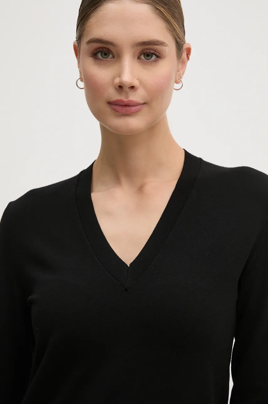 Свитер United Colors of Benetton выполнен из однотонного трикотажа. Модель изготовлена ​​из чрезвычайно комфортной ткани с высоким содержанием вискозы.