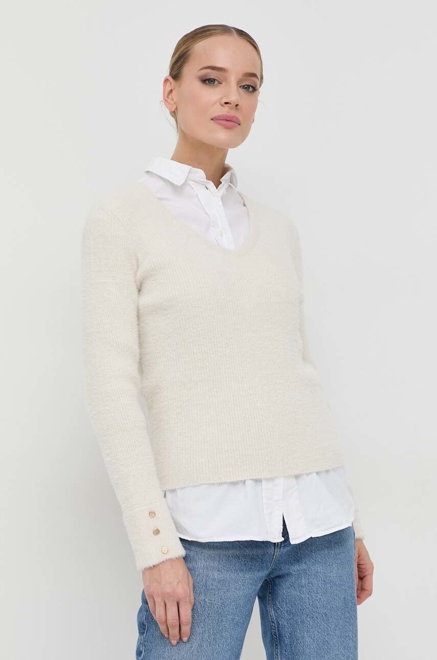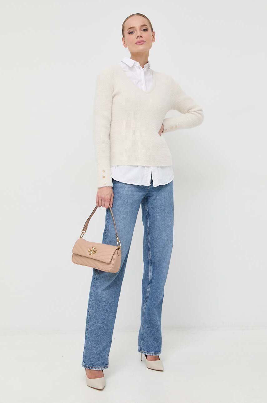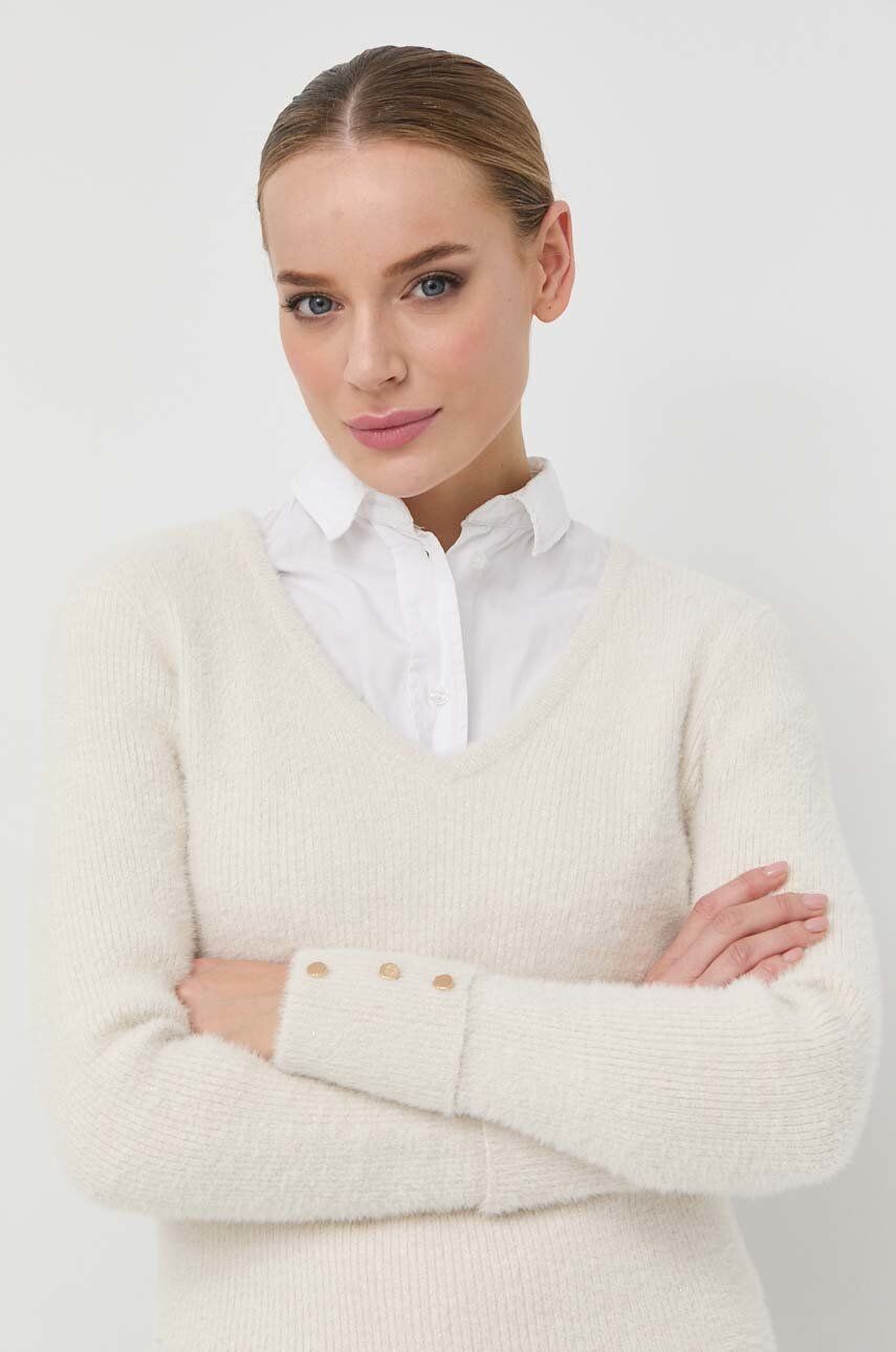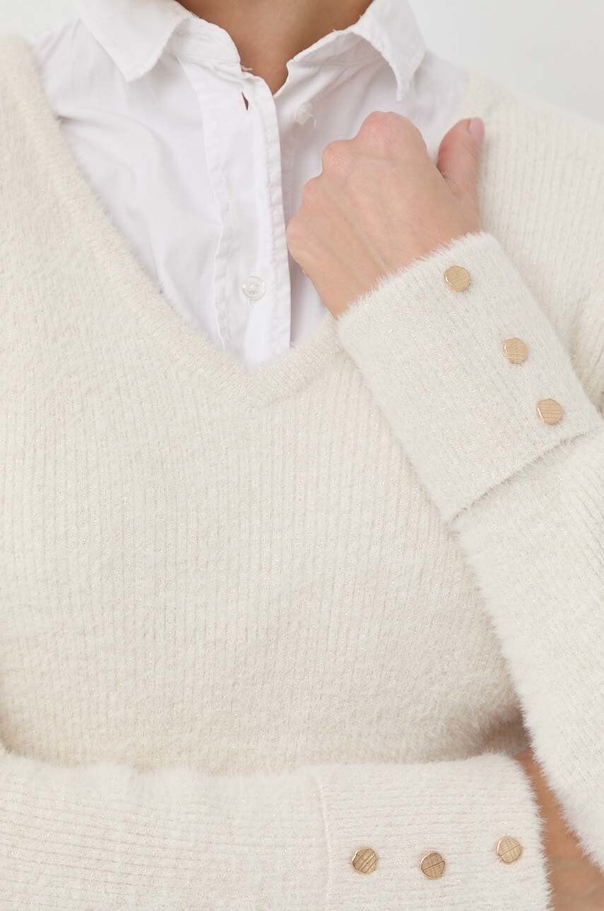 Морганский свитер. С V-образным вырезом, выполнен из однотонного трикотажа с V-образным вырезом. Материал исключительно приятный на ощупь.