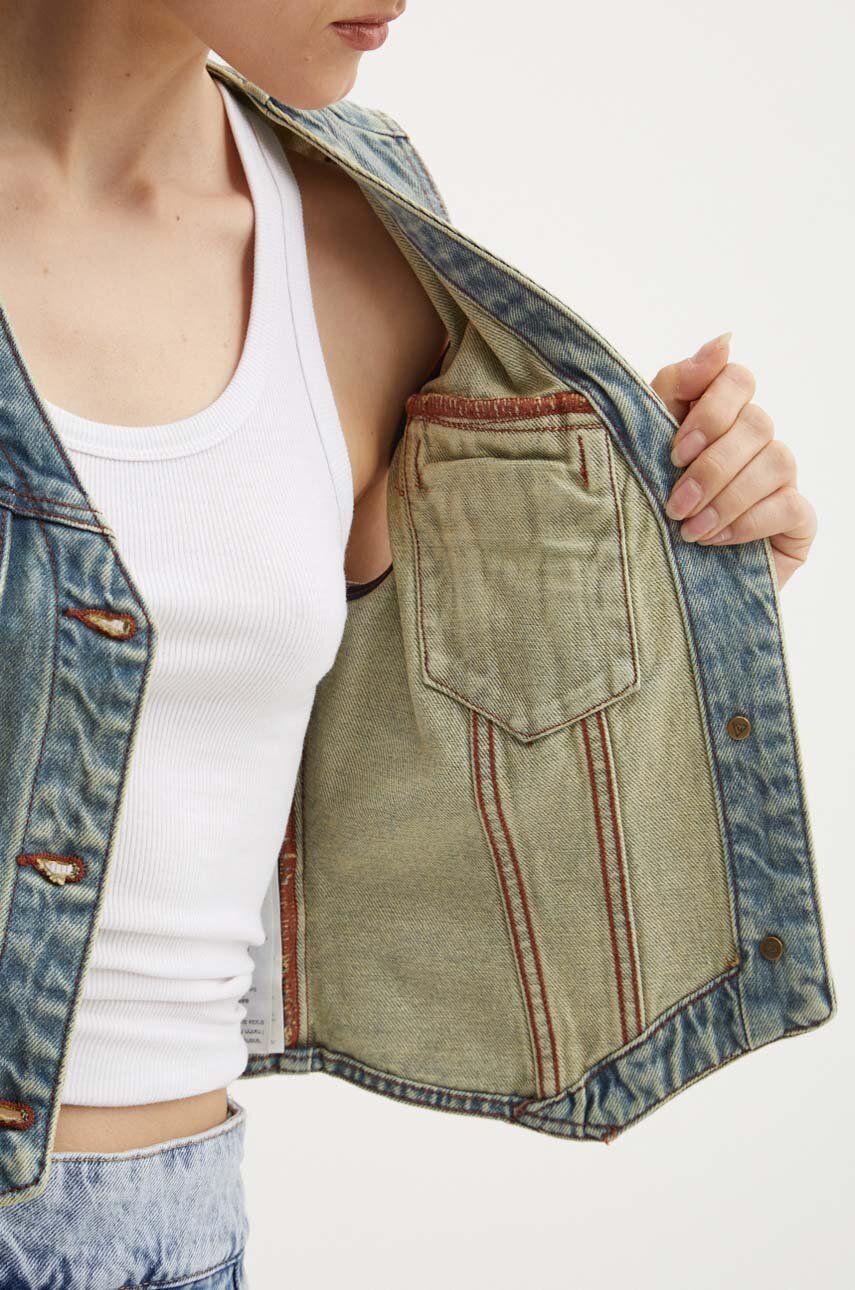 Жилет Guess Originals из джинсовой ткани. Модель изготовлена ​​из очень комфортной хлопковой ткани.