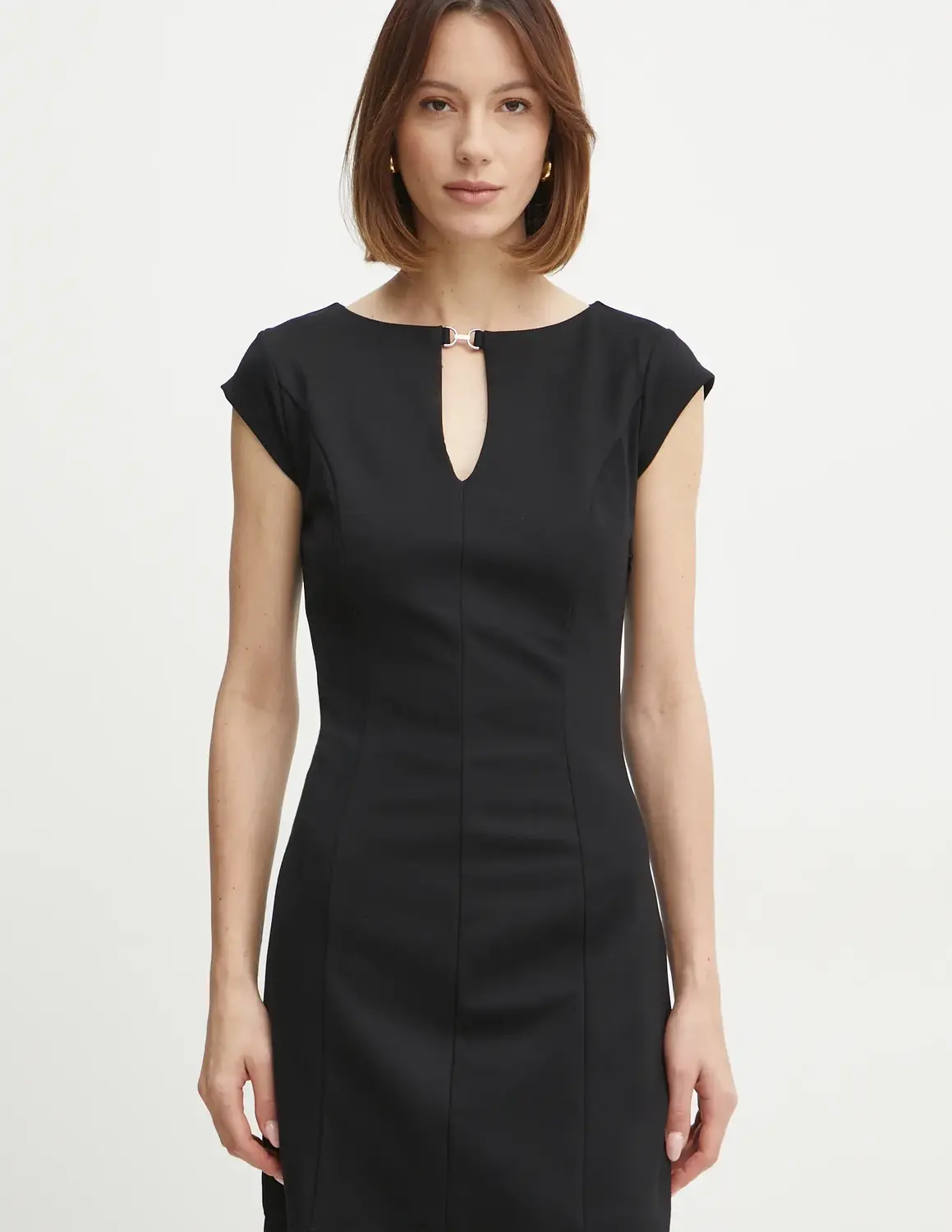 Guess платье. Изготовлен из однотонного трикотажа. Модель изготовлена ​​из легкого и дышащего материала с высоким процентом вискозы.