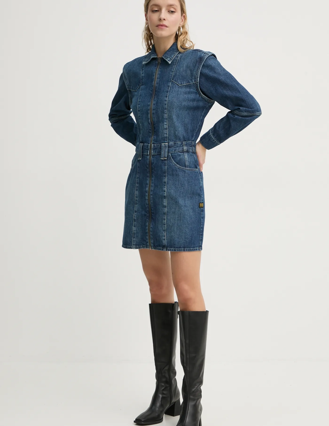 Платье G-Star Raw. Изготовлен из джинсовой ткани. Модель изготовлена ​​из чрезвычайно удобного и качественного материала.