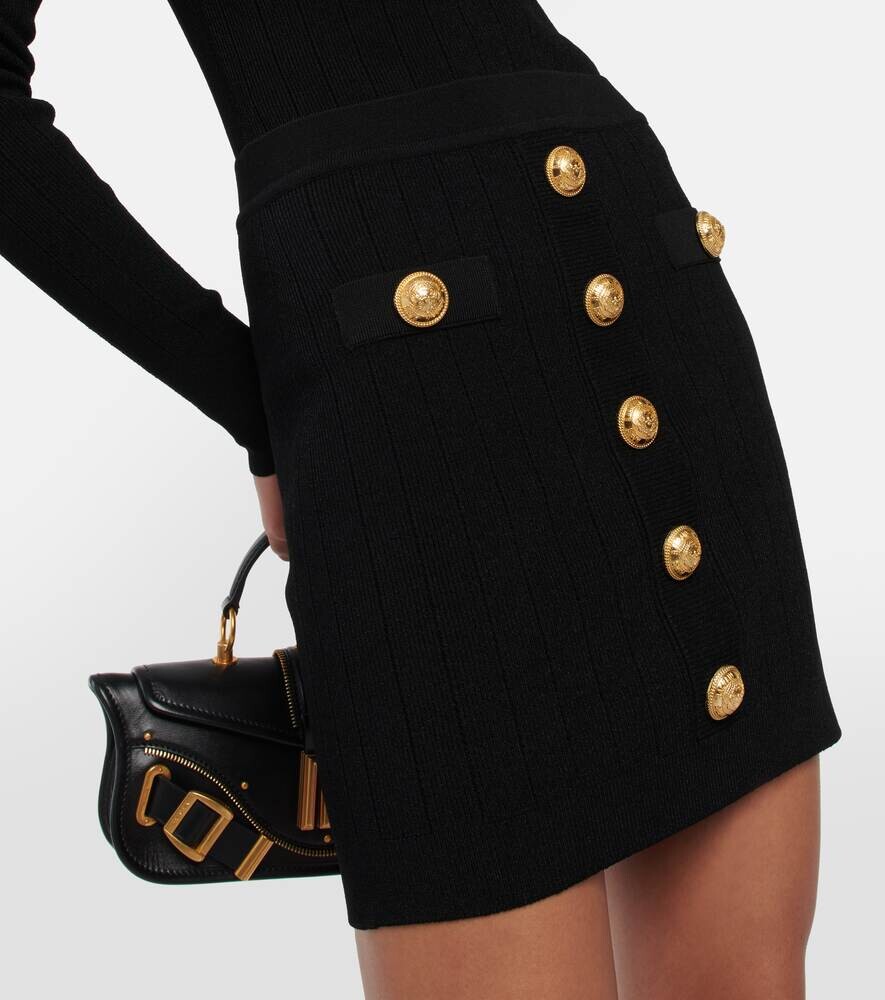 Трикотажная мини-юбка с высокой посадкой BALMAIN, черный