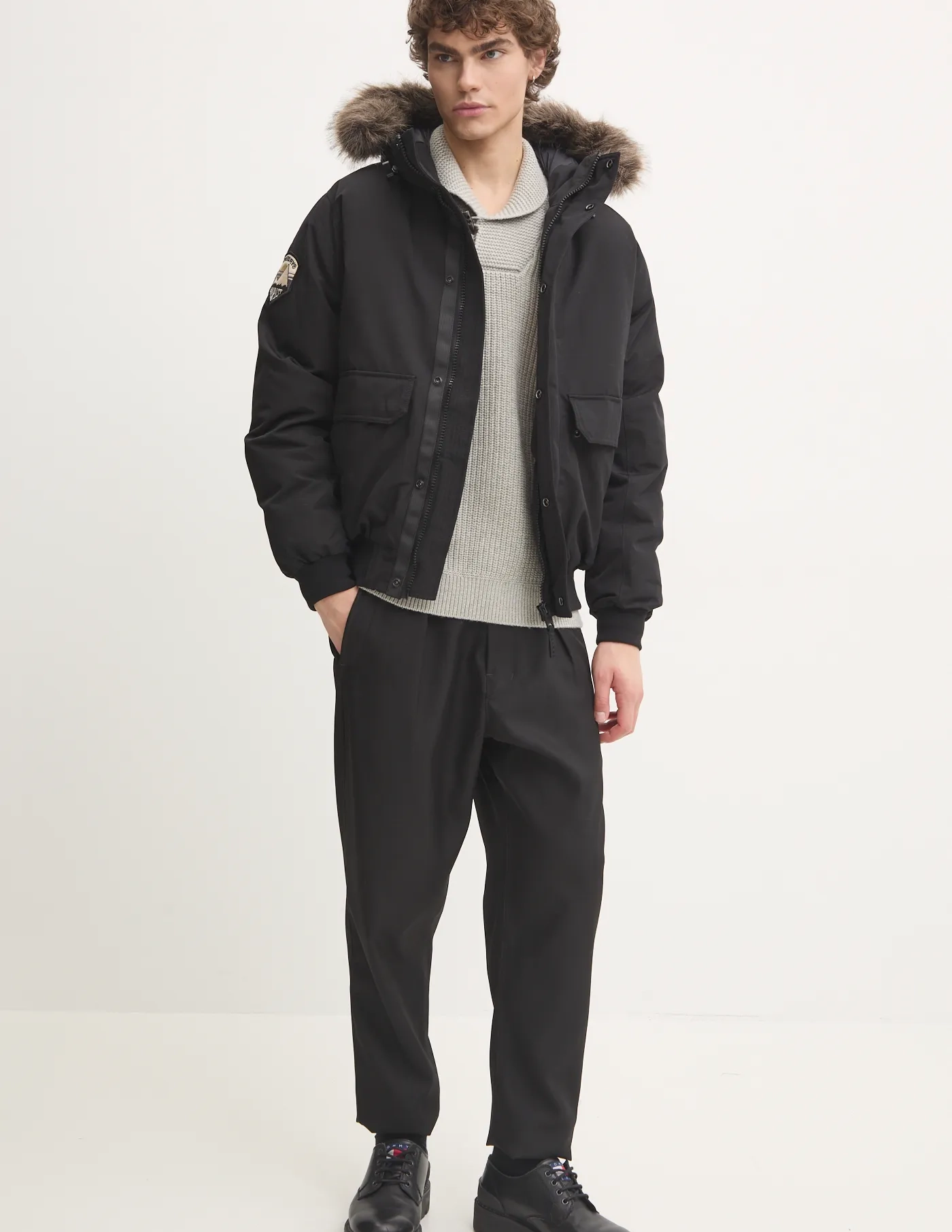 Свитер Superdry выполнен из эластичного трикотажа средней толщины. Модель выполнена из приятной на ощупь ткани.