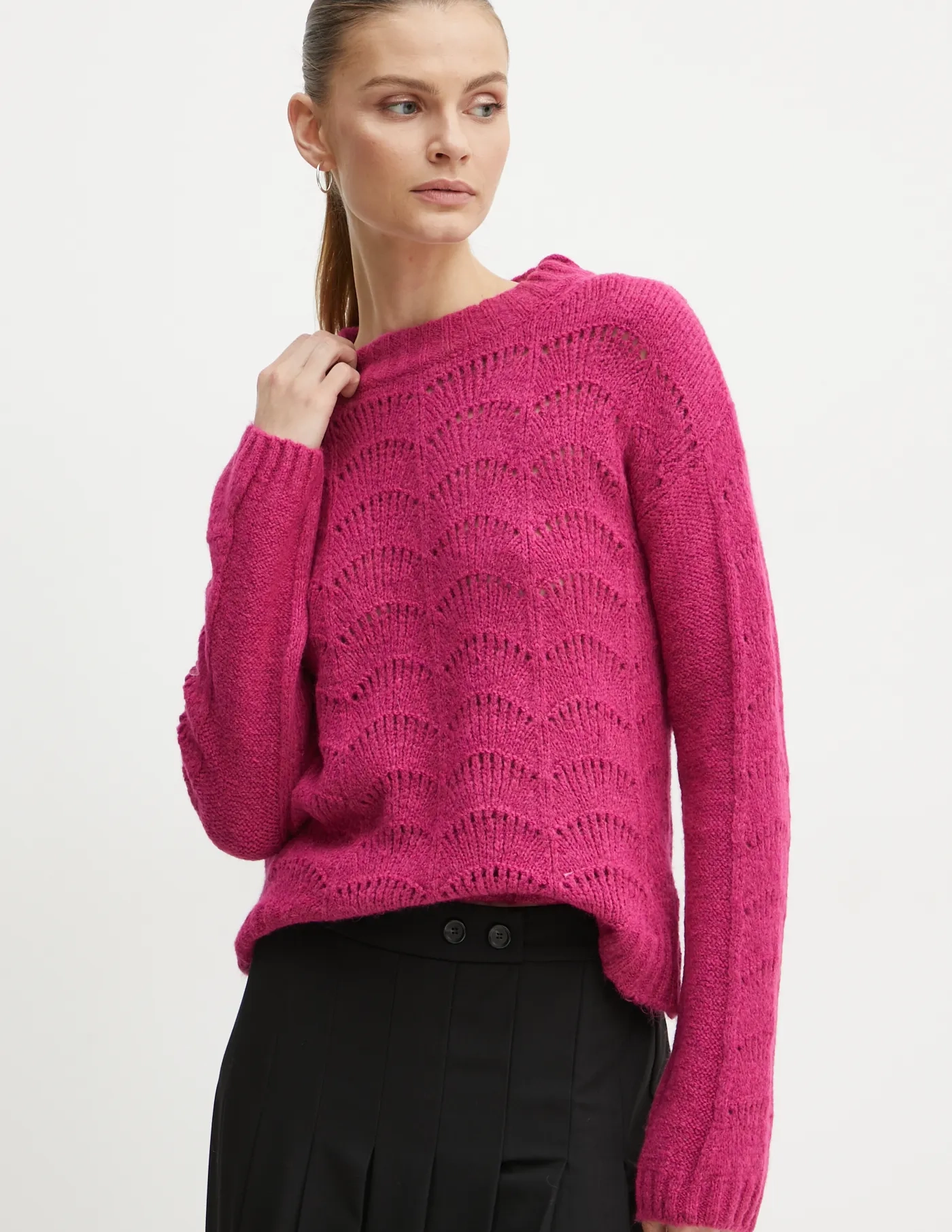 Свитер Морган выполнен из эластичного трикотажа средней толщины. Модель выполнена из приятной на ощупь ткани.