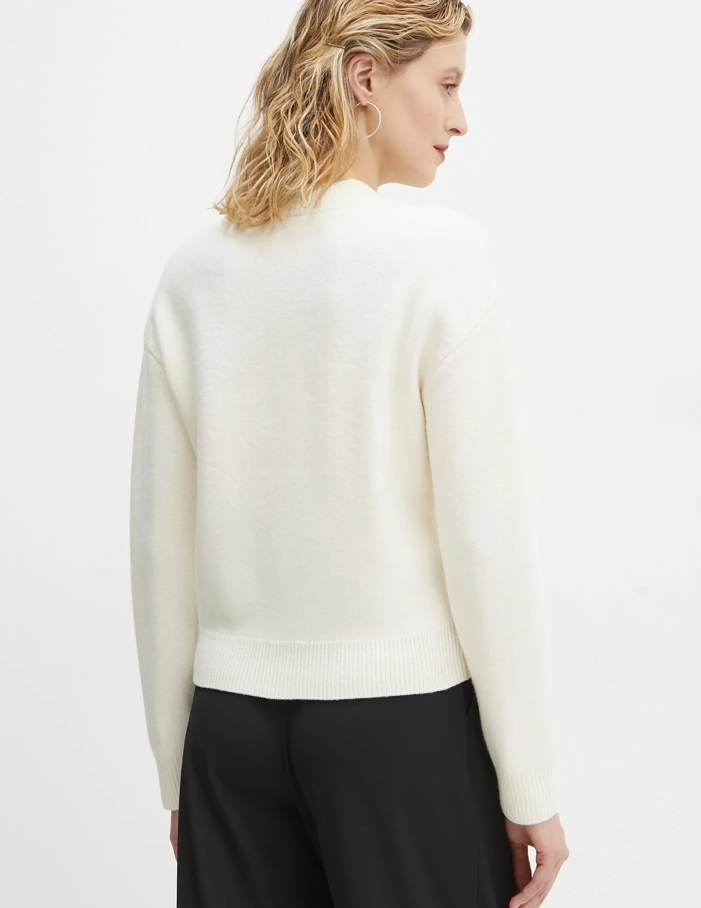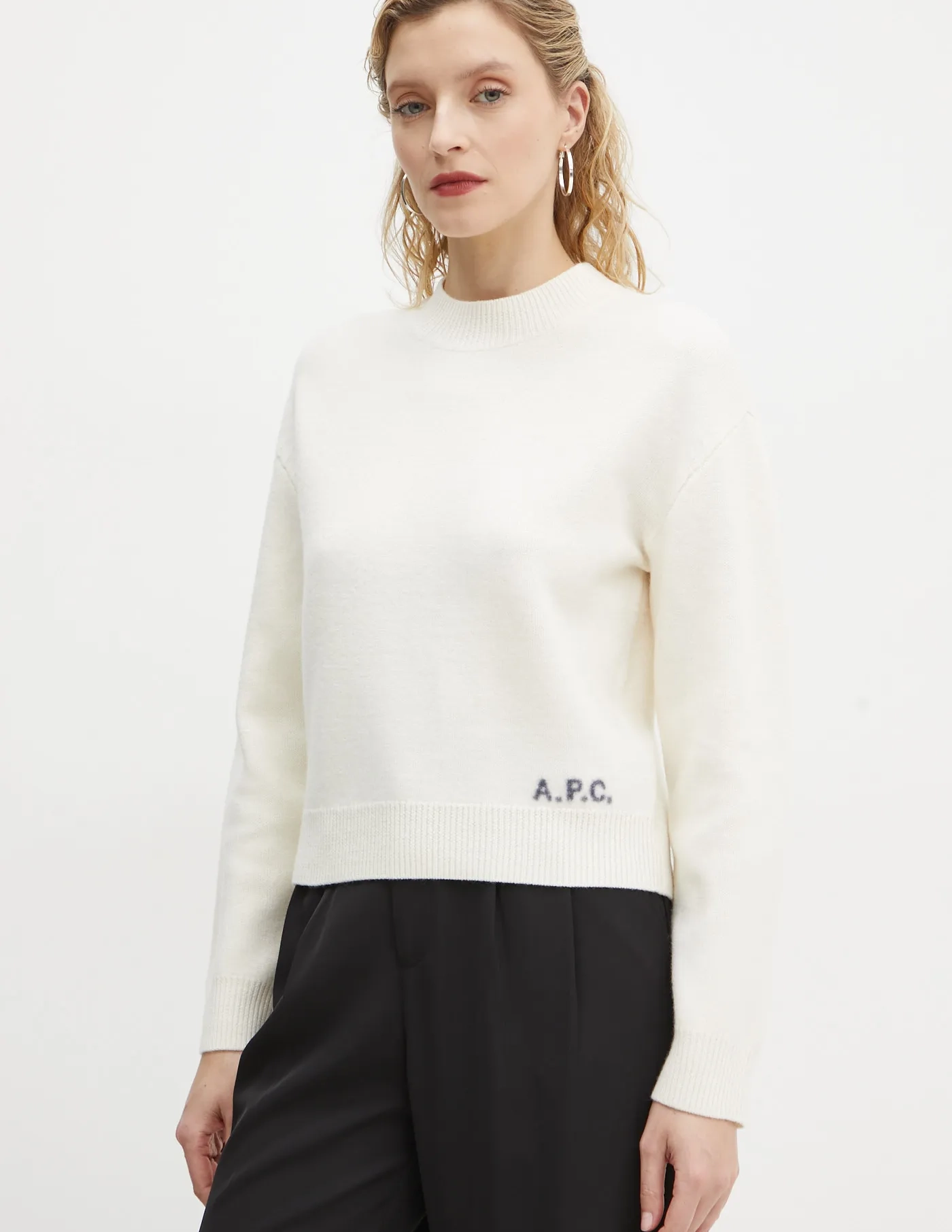 А.П.К. Свитер выполнен из однотонного трикотажа. Натуральная шерсть легче классической. Он отличается необычайной мягкостью и стойкостью.