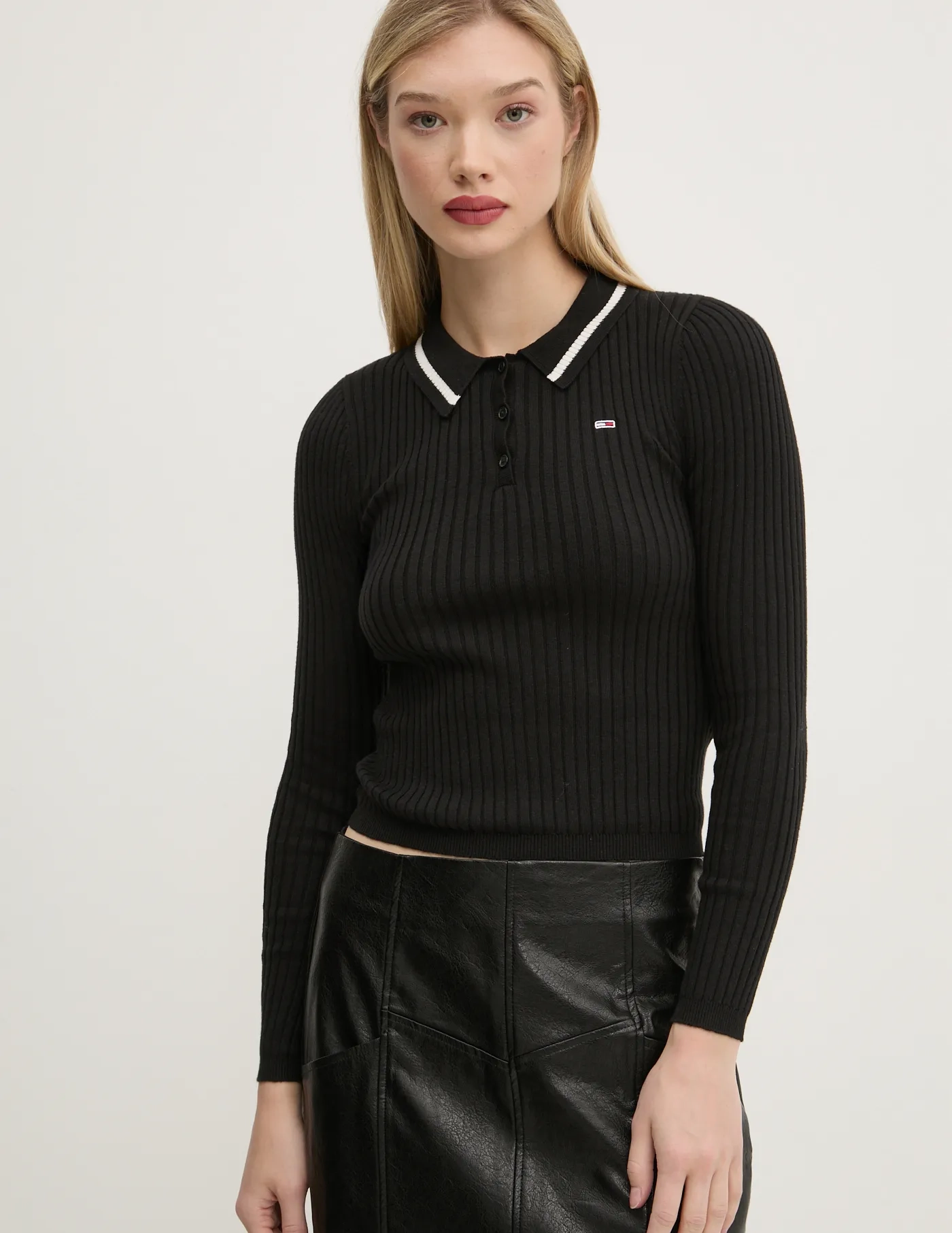 Свитер Tommy Jeans выполнен из однотонного трикотажа. Модель изготовлена ​​из чрезвычайно комфортной ткани с высоким процентом хлопка.
