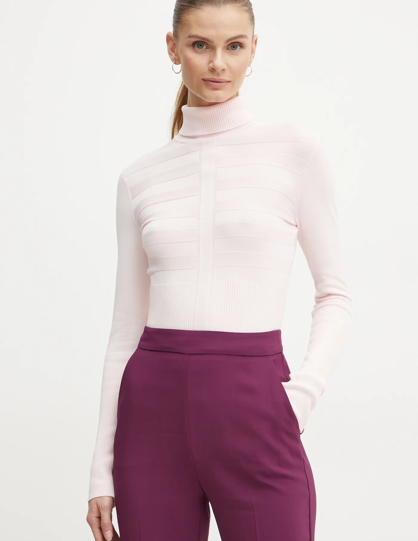 Свитер Морган выполнен из эластичного трикотажа средней толщины. Модель изготовлена ​​из легкого и дышащего материала с высоким процентом вискозы.