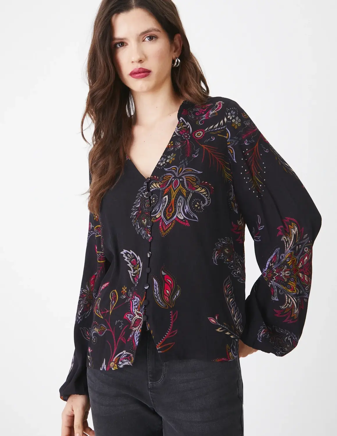 Медицинская рубашка. Модель из узорчатой ​​ткани. V-образный вырез.