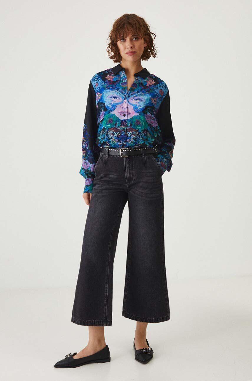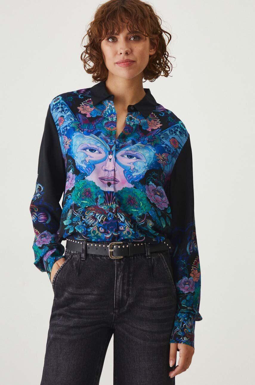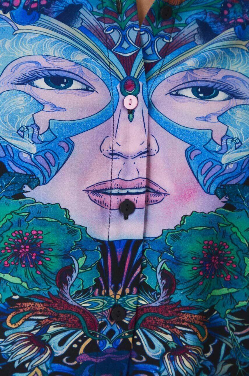 Медицинская рубашка. Изготовлен из принтованной ткани. Оборудован воротником.